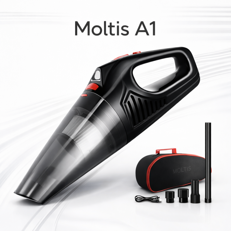 Однією з головних переваг Moltis A1 є висока сила всмоктування – до 8000 Pa. Він ефективно видаляє пил, дрібне сміття, волосся та інші забруднення навіть у важкодоступних місцях. Компактний і легкий дизайн робить пристрій зручним для прибирання будь-яких куточків салону.