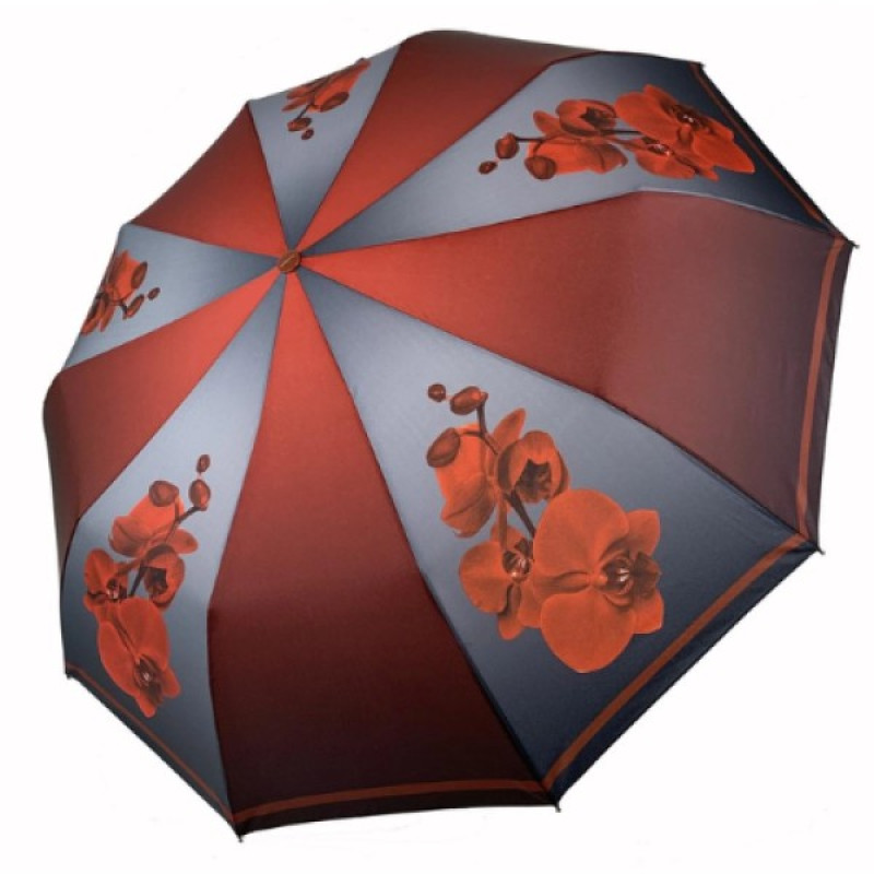 Жіноча складана парасолька-напівавтомат c принтом орхідей бордовий, 509-1