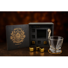 Подарунковий віскі-набір Moltis Saxum Premium з келихом, щипцями, мішечком, підставкою та 5 охолоджувальними кубиками (MR-1021)