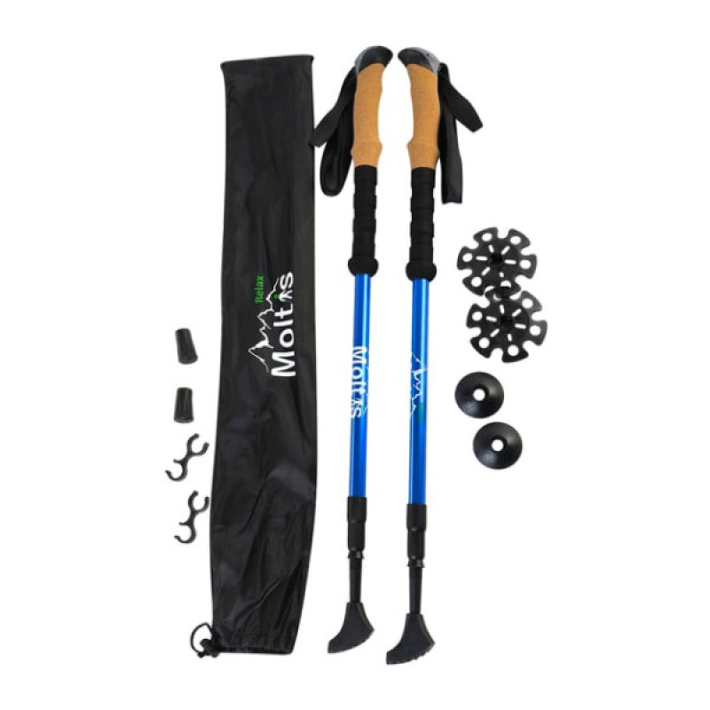 Відкрийте для себе світ комфортного та безпечного трекінгу з легкими, міцними та зручними телескопічними палицями Moltis Relax 140 Antishock у синьому кольорі. Виготовлені з високоякісного алюмінію 6061, ці палиці гарантують довговічність та стануть незамінними помічниками у ваших походах, додаючи яскравого акценту до вашого спорядження.