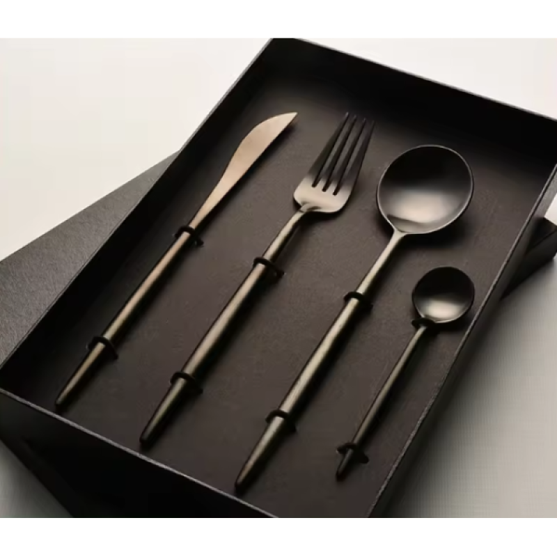 Вмикання зі смаком оформленої подарункової коробки робить цей набір столових приборів ще привабливішим. Коробка, виготовлена з увагою до деталей, забезпечує надійне й організоване рішення для зберігання набору, підтримуючи його в ідеальному стані. Це також додає елемент несподіванки та передчуття для одержувача, роблячи процес розпакування ще особливим.
