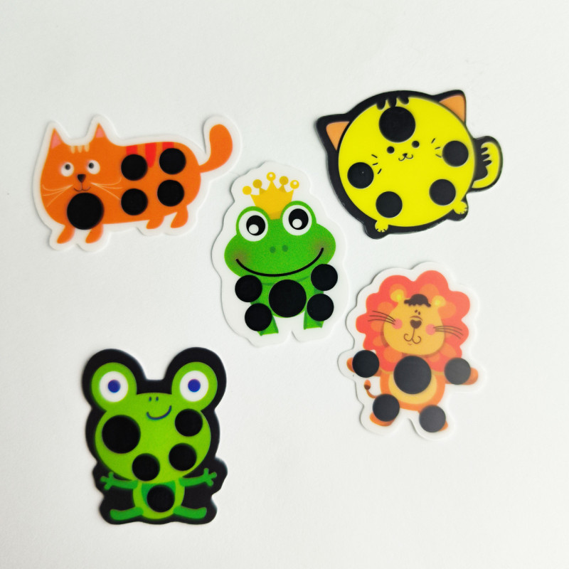 Комплект з 5 наклейок: Котик жовтий, Рудий котик, Жабеня, Жаба царівна , Лев.